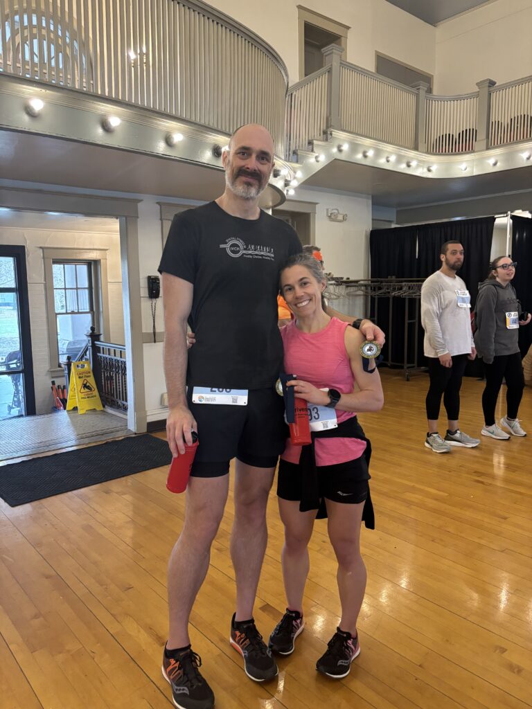 This is a picture of me and my husband after a 5K after we both committed to focusing on nutrition, regular training, and also getting out and being social instead of hibernating in our house like we’re often tempted to do.